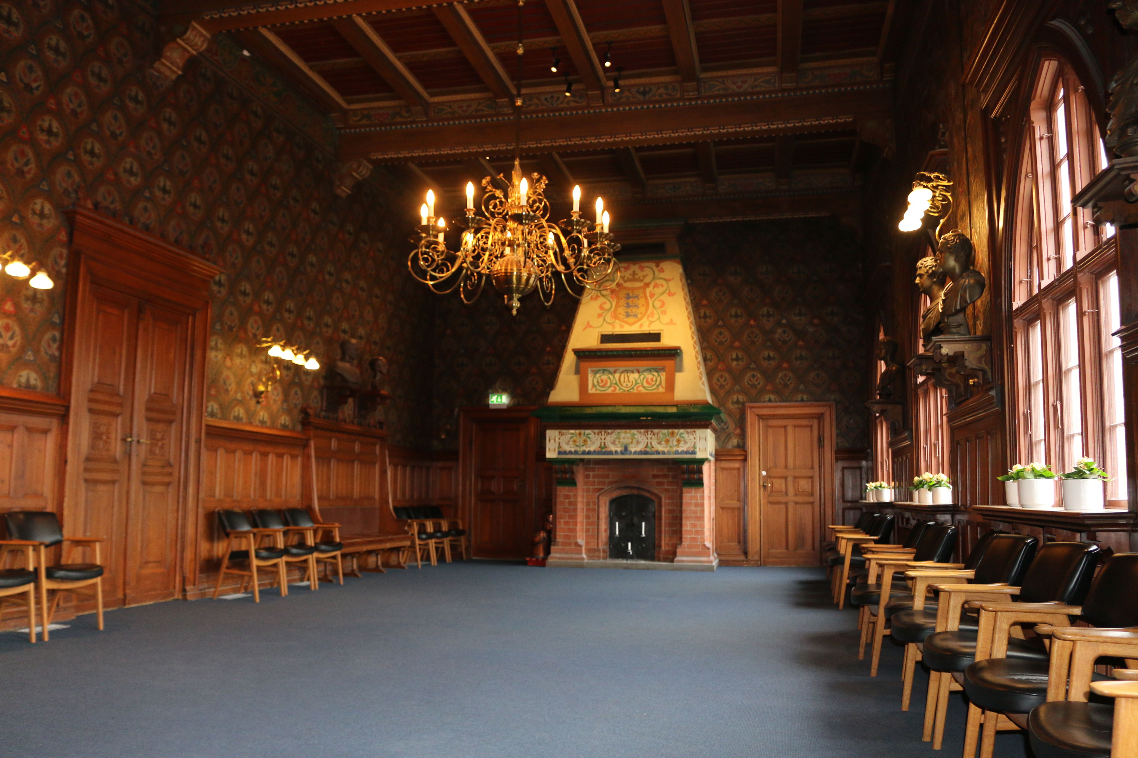 Den Gamle Byrådssal udlånes primært til store offentlige arrangementer – og du forpligter dig til at synliggøre arrangementet via markedsføring, og ved på dagen at lægge den røde løber ud.