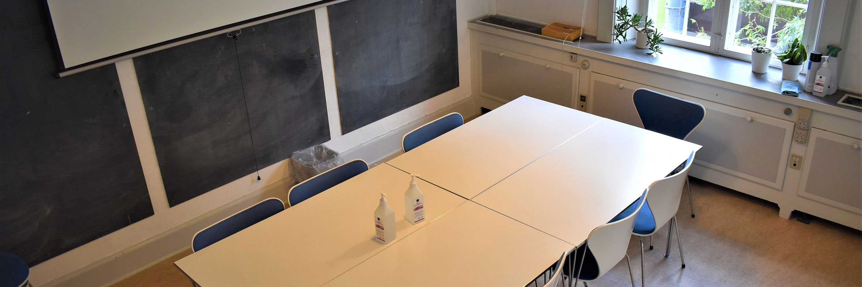 - alle borde og stole skal stilles på plads, som vist på oversigten i lokalet.