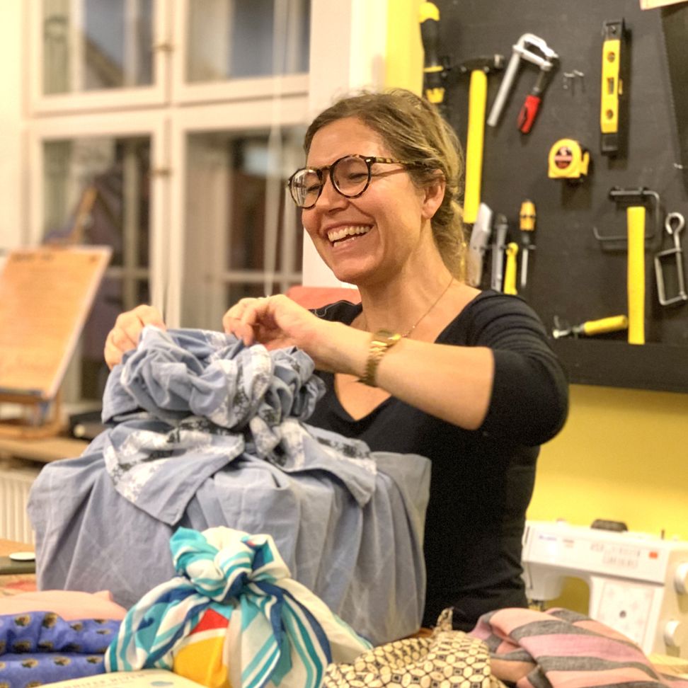 Vi starter med at omdanne donerede stofrester til gave-stof og bagefter lærer du nogle simple teknikker, som kaldes ’Furoshiki’.