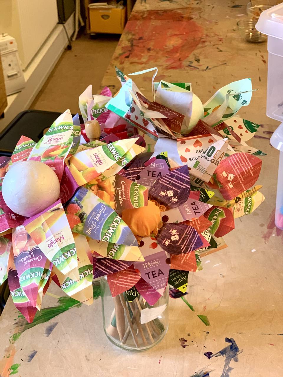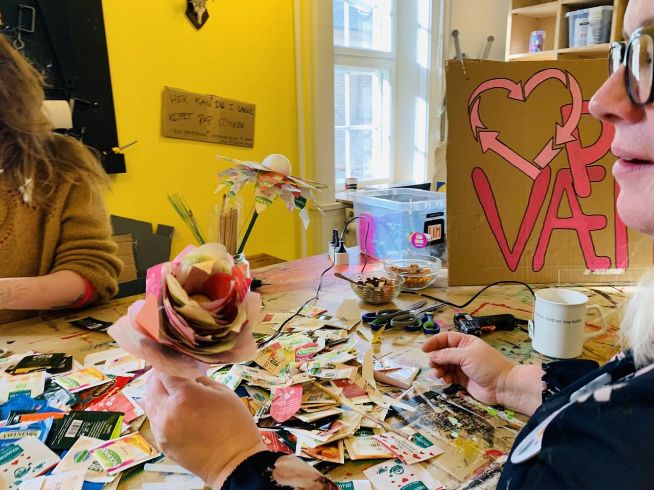 Skab evighedsblomster. Enkeltstående eller som en buket. En simpelt begynder teknik, der hurtigt kan udvikle sig mere avancerede blomster. Vi arbejder som udgangspunktet med genbrugspapir rester, denne gang er var det emballagen fra tebreve.