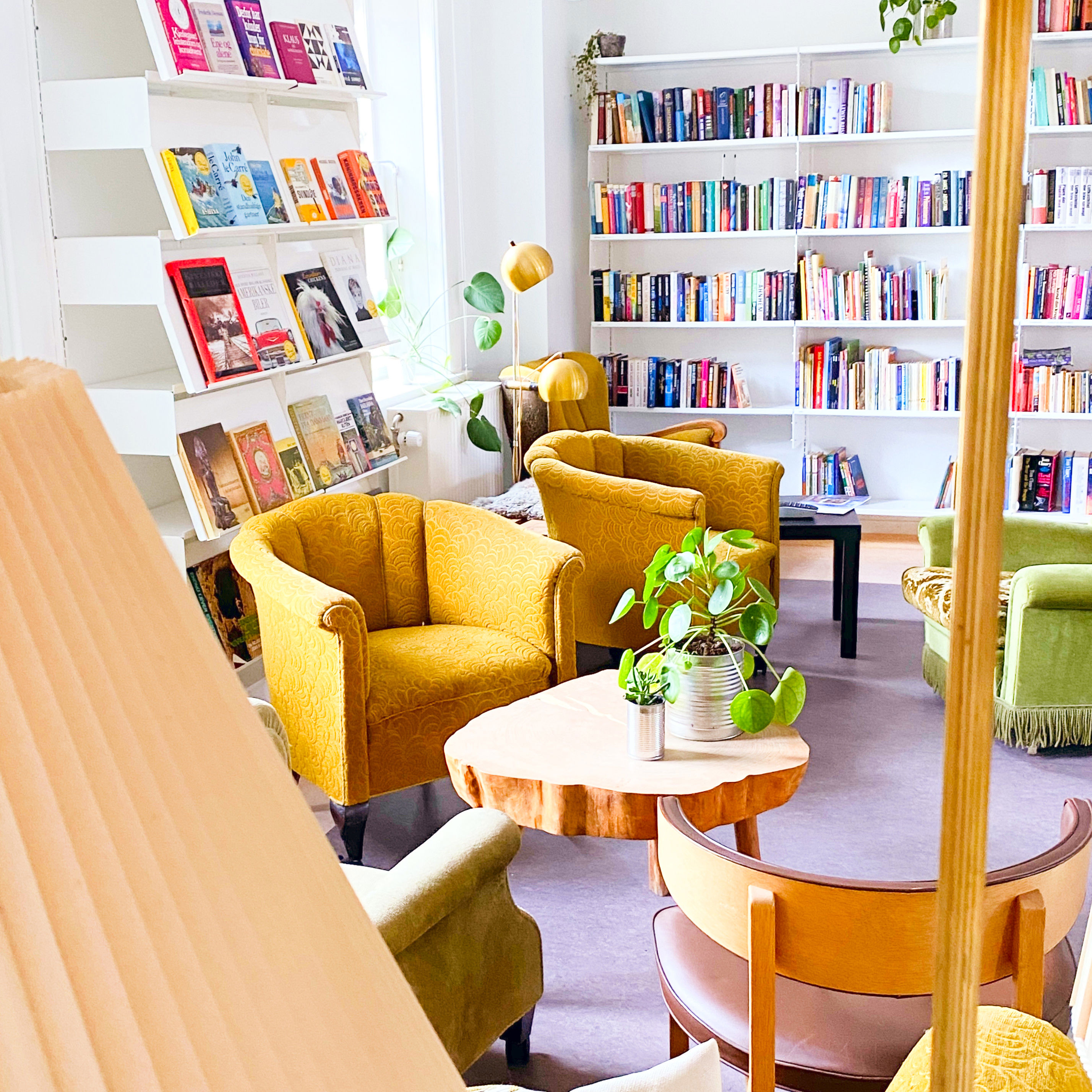 I Stuen er der plads til inspiration, fordybelse, og fællesskab. Gå på opdagelse, læs avisen, byt en bog, brug værkstedet - deltag.