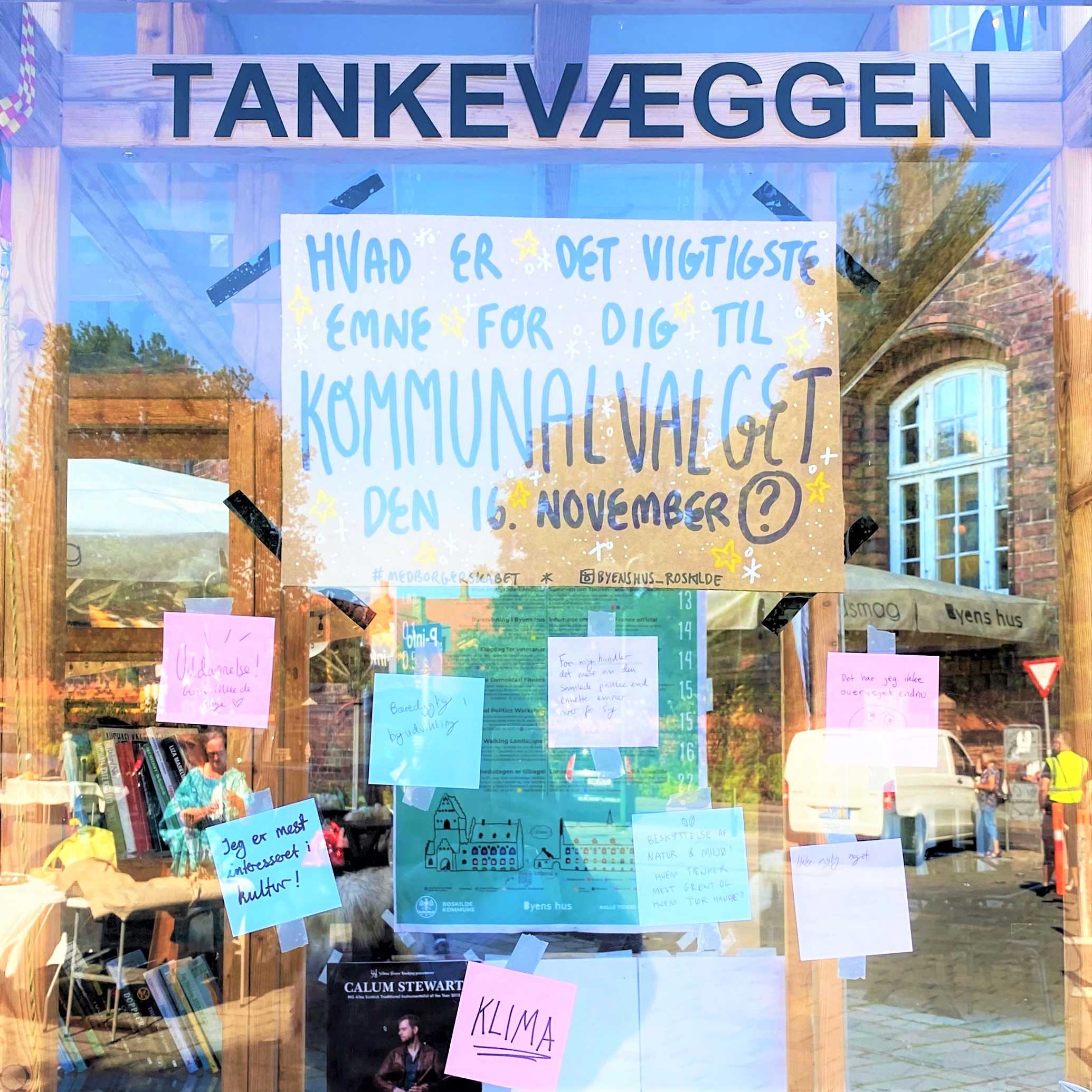 Med tankevæggen ønsker demokratihuset Byens hus Roskilde at invitere dig, og jer, til at stoppe op på det samme sted og blive klogere på andres perspektiv – uden at mødes eller gå i direkte dialog.