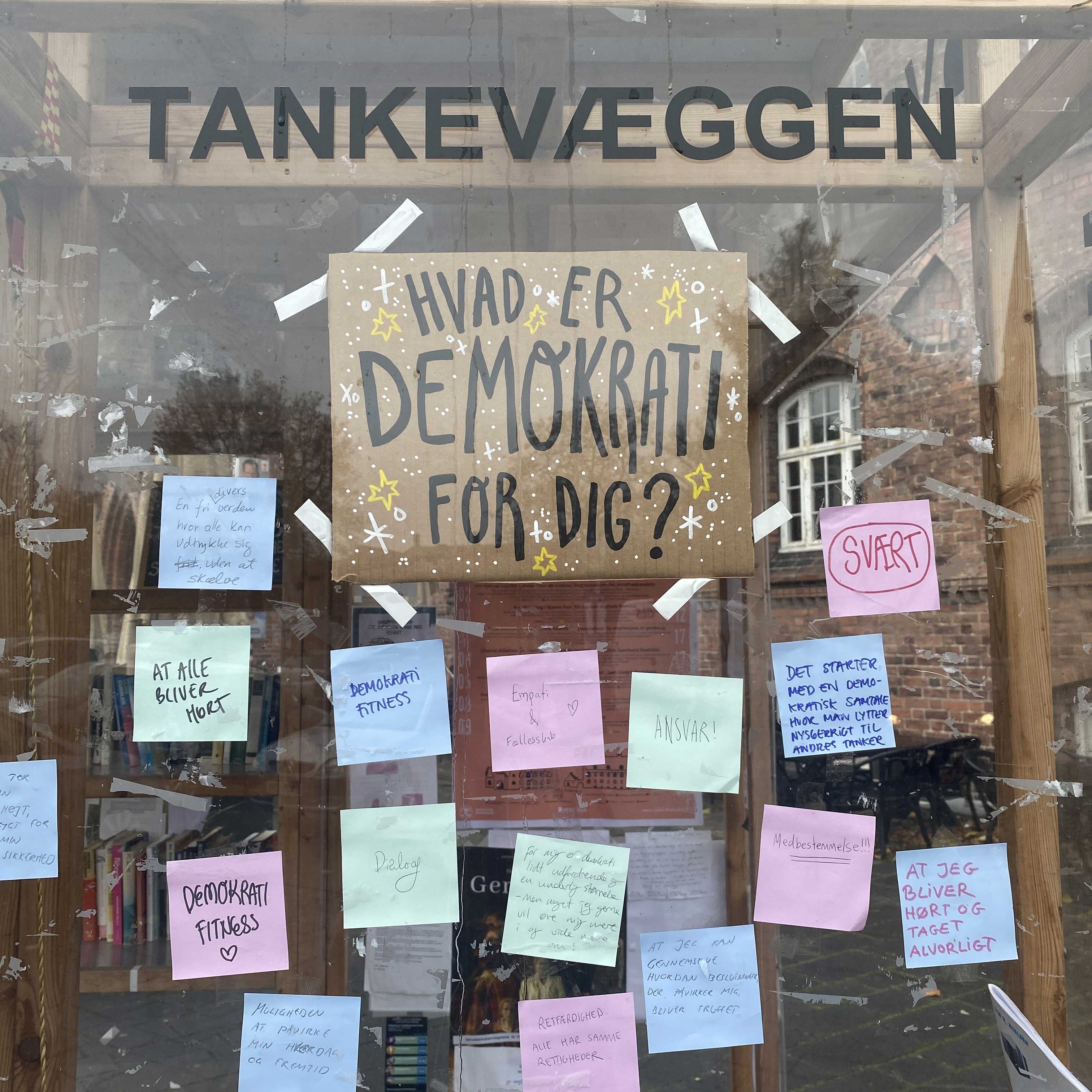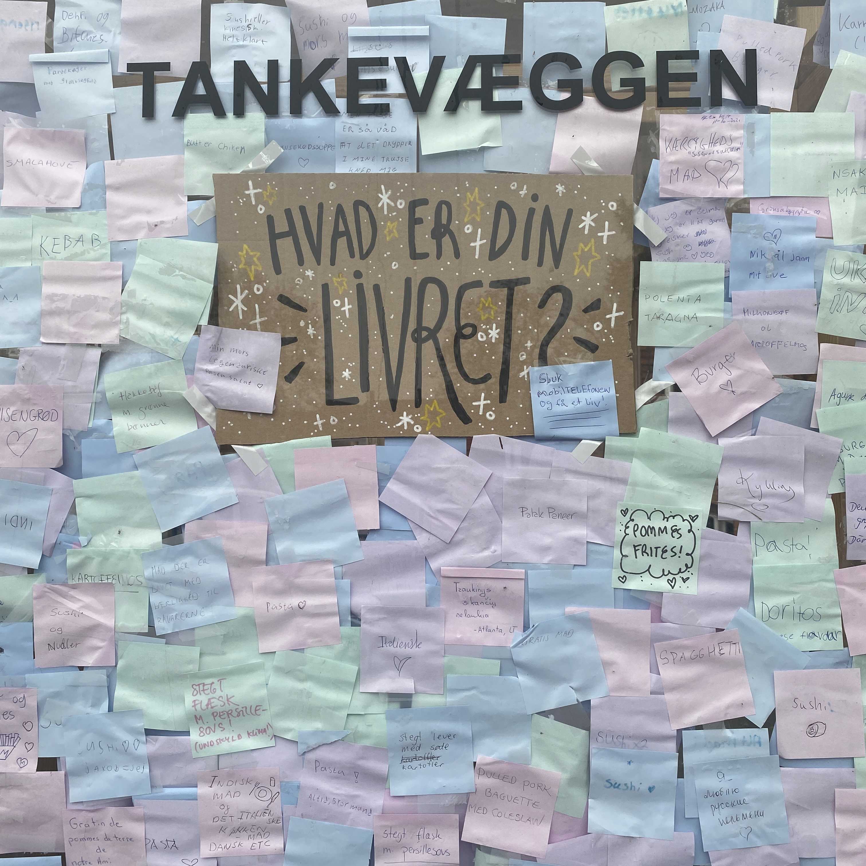 På tankevæggen kan vi – i vores eget tempo – gå på opdagelse i hinandens perspektiver og dele vores egne.